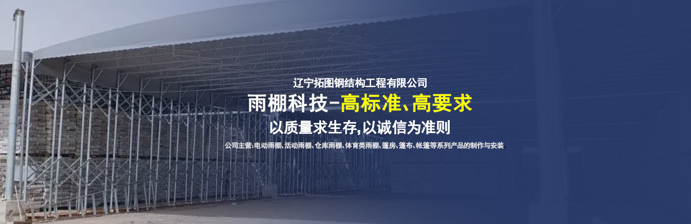 遼寧拓圖鋼結構工程有限公司是一家專業從事推拉篷設計、制作、安裝、使用、維修的綜合性公司。公司主營:電動雨棚、活動雨棚、倉庫雨棚、體育類雨棚、篷房、篷布、帳篷等系列產品的制作與安裝。 遼寧拓圖鋼結構工程有限公司堅持以市場為導向,以科技創新為動力,以質量求生存,以誠信為準則,倡導求實、進取、創新的企業精神?!翱茖W的管理、嚴謹的設計、 的制作安裝、嚴格的質量檢測、良好的后期服務成就企業的信譽,為您提供優質服務?! ?nbsp; 遼寧拓圖鋼結構工程有限公司傾力于開發應用三維空間結構與新材料的結合,將廣告藝術視覺表現形式與張力膜材科學的結合,推出多彩推拉蓬,依靠先進的科學技術,將推拉蓬建筑表現形式無限延伸,立志走在建筑科學的前沿,引導建筑時尚潮流,我們的目標是使推拉蓬建筑在中國發展壯大?! ?nbsp; 遼寧拓圖鋼結構工程有限公司憑著極強的事業熱情和豐富的專業經驗以“勤勉進取、銳意創新、至誠至信”的精神使公司得到迅速健康發展,業務范圍遍及全國??茖W的管理、嚴謹的設計、高標準的制作安裝流程,嚴格把控產品質量,熱誠的售后服務是企業競爭力的源泉?! ?nbsp; 遼寧拓圖鋼結構工程有限公司人愿以最誠摯的態度,歡迎廣大客戶的蒞臨與溝通!愿為市場提供優...